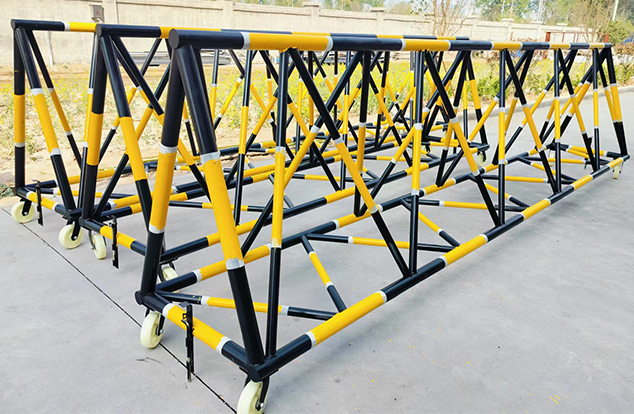 移动灵活:这类护栏底部通常配备有轮子或滑轮,使得用户可以轻松地根据需要进行移动和重新布置,无需复杂的安装过程。