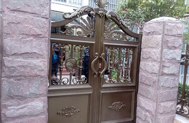 选择别墅院子大门除了要考虑材质、色彩、造型外还有几方面要注意的。选择时要注意材质本身是否具备不生锈,不易变色的特点。由于大门长期处于室外环境,环境的温度湿度等都会对大门造成不同的影响,所以要考虑长久使用后大门的外观效果。